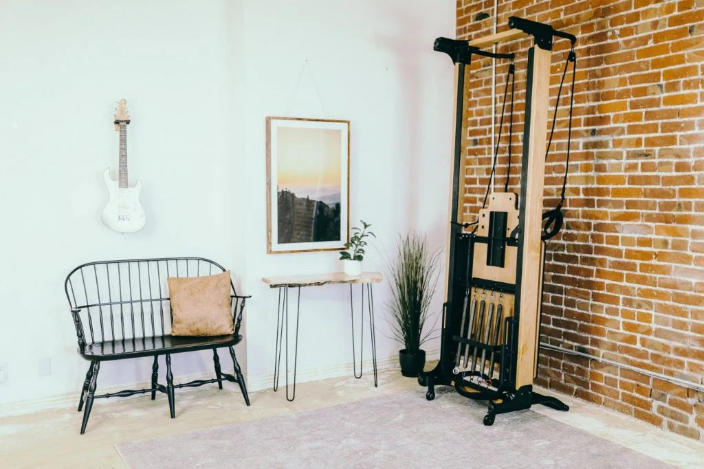 This studio-grade pilates reformer is artfully engineered with solid Cherry hardwood and aluminum alloy. With 48 adjustable settings our reformer fits most body types 5'0 to 6'6" up to 350lbs.