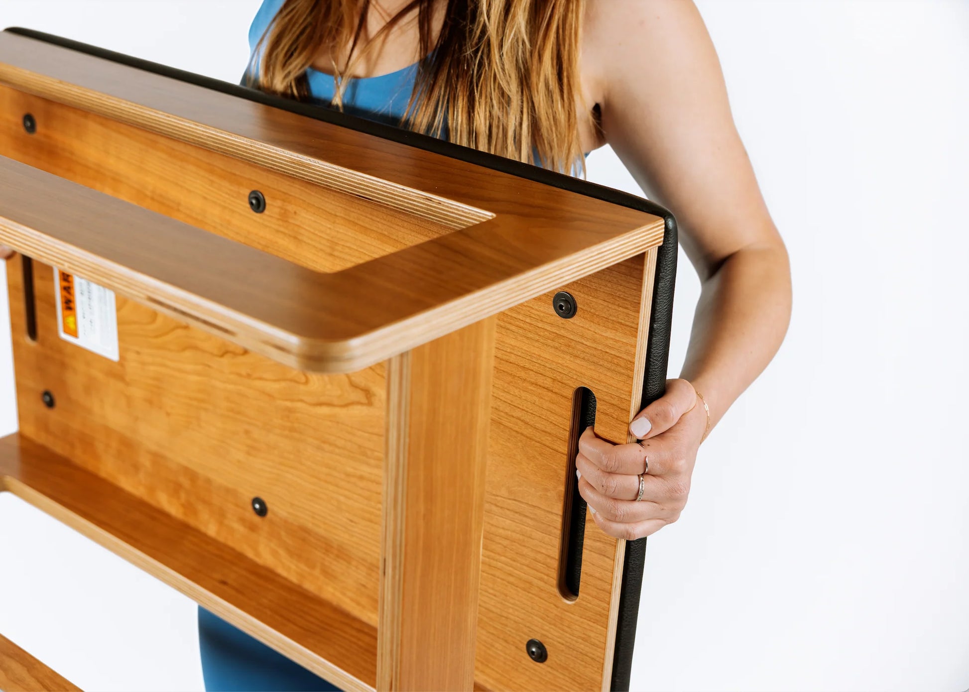 “The sitting box is a portable accessory. You’re constantly moving it throughout a session, so searching for a specific handhold to move it can be limiting. I wanted ours to be super easy to grab from any angle–and also look beautiful in your home as an accessory.”