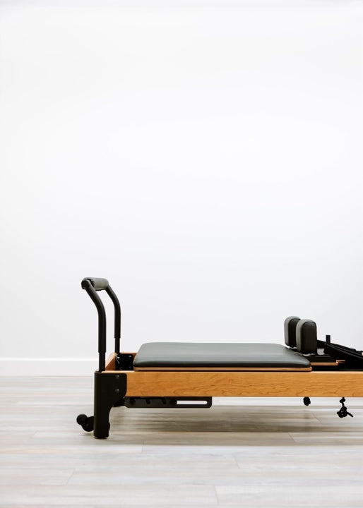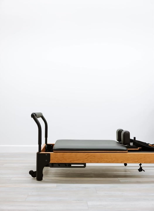 Additionally, the Sitting Box fits the exact width of the Reformer carriage, so no corners will protrude off of the carriage, as is the case with many other sitting box designs.